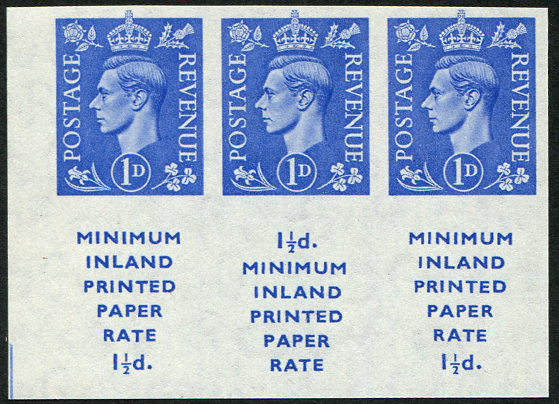 1d sg504 IMPERF IMPRIMATUR ADVERTISING BOOKLET PANE OF THREE + labels , backstamped BPMA pristine fresh & rare. (Upright wmk) (c£15,000)