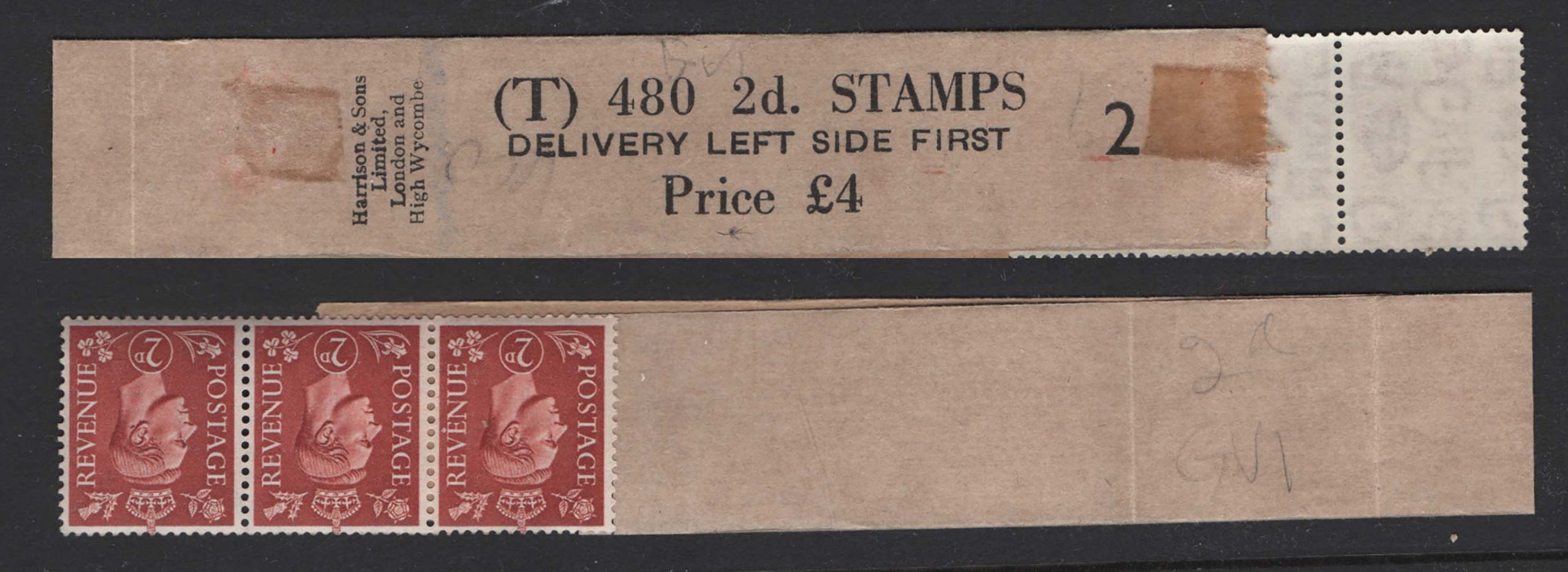 GB 1951 New colours 2d watermark sideways fine T480 coil leader #2 with 3 stamps attached sg506a unmounted mint [ref: 294/480 s/am0075]