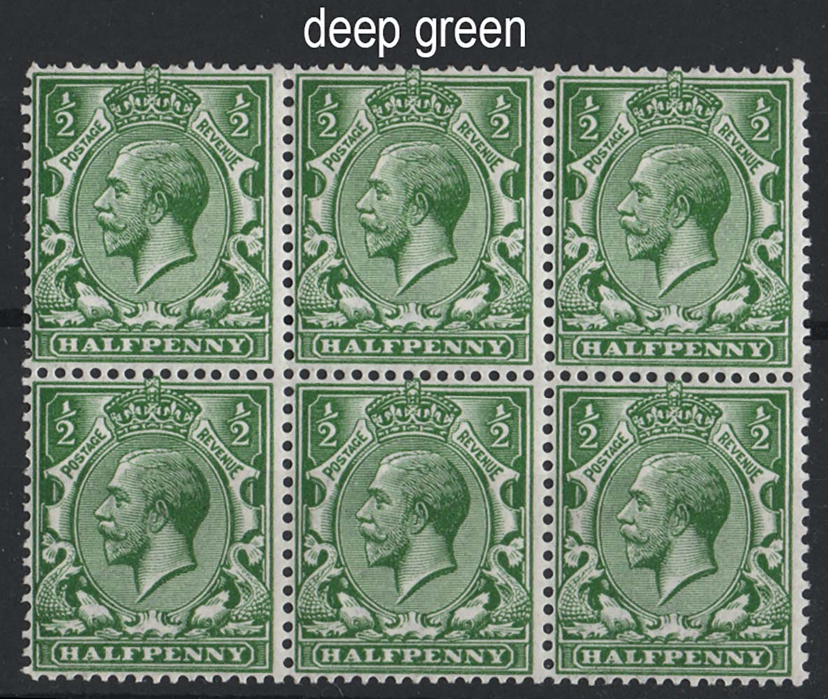 GB 1912 ½d deep green fine block of 6, 5x unmounted mint sg353 cat £55 [ref 291-481/sa/ai0431]