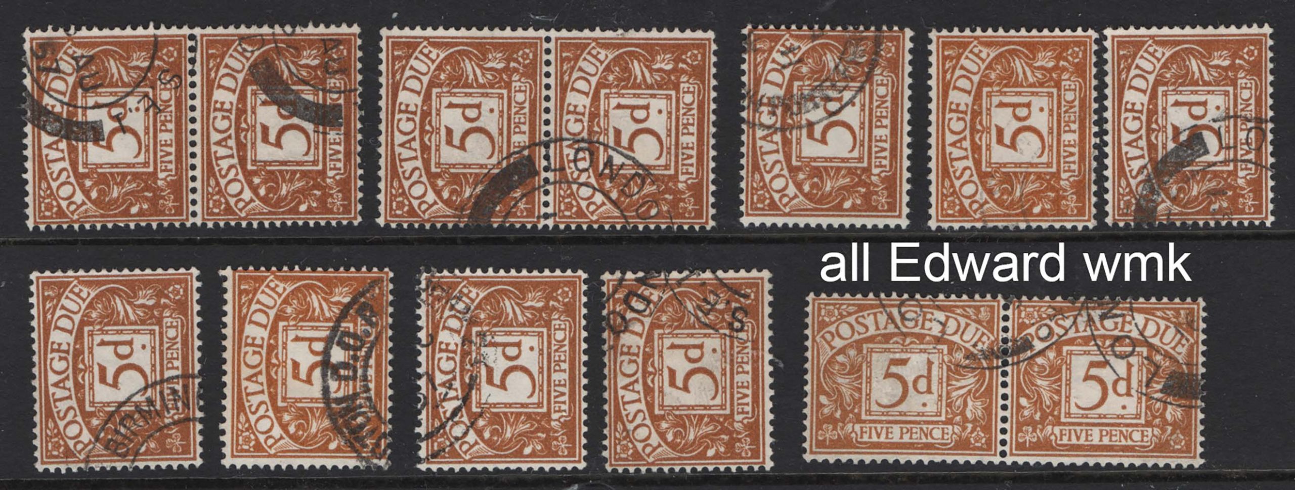 Edward wmk 5d postage dues sgD52 13x fu cds copies (interesting shades) cat £130