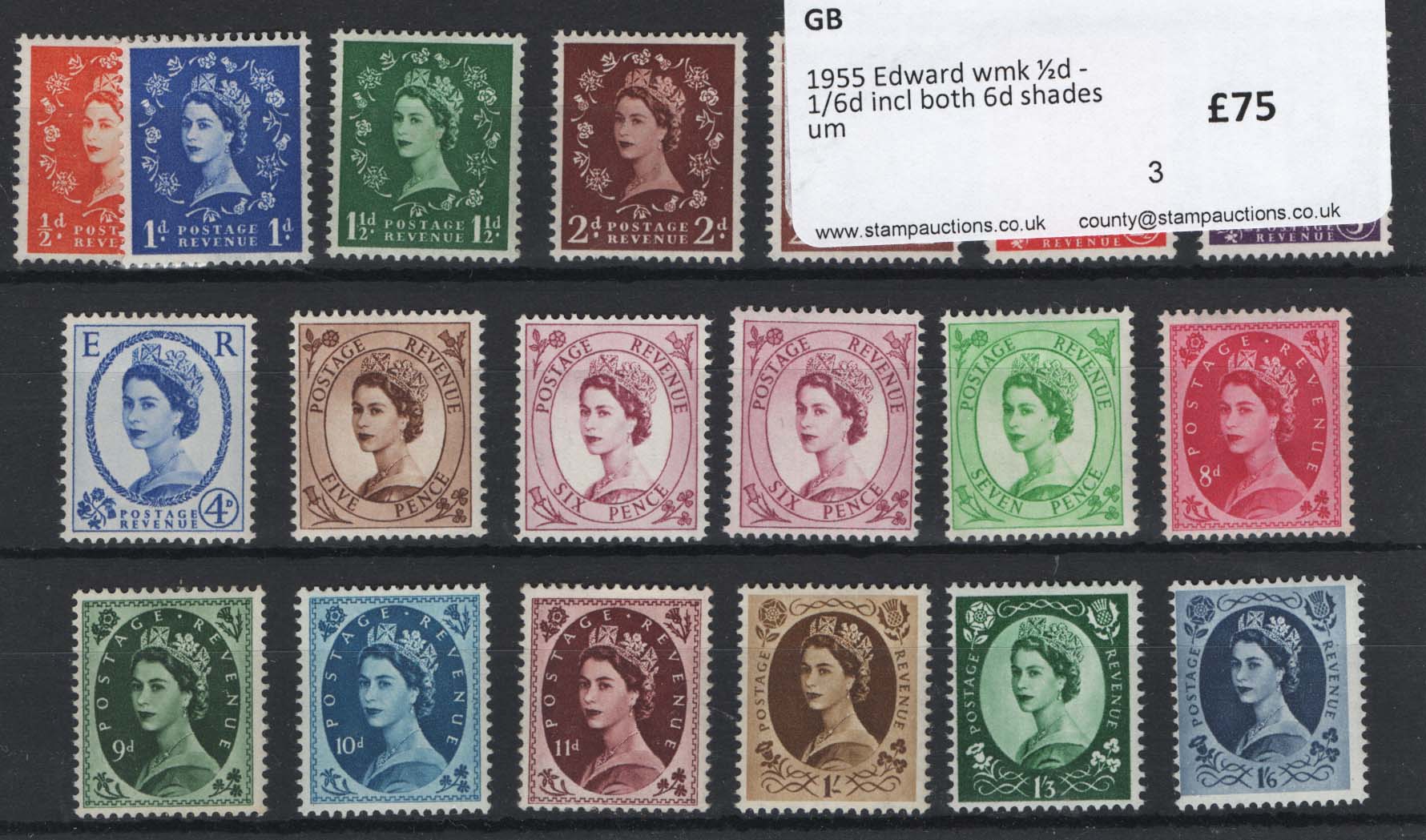 GB 1955 Edward watermark ½d – 1/6d incl both 6d shades unmounted mint sg540-546 [ref: 294/488 sa/am0466]