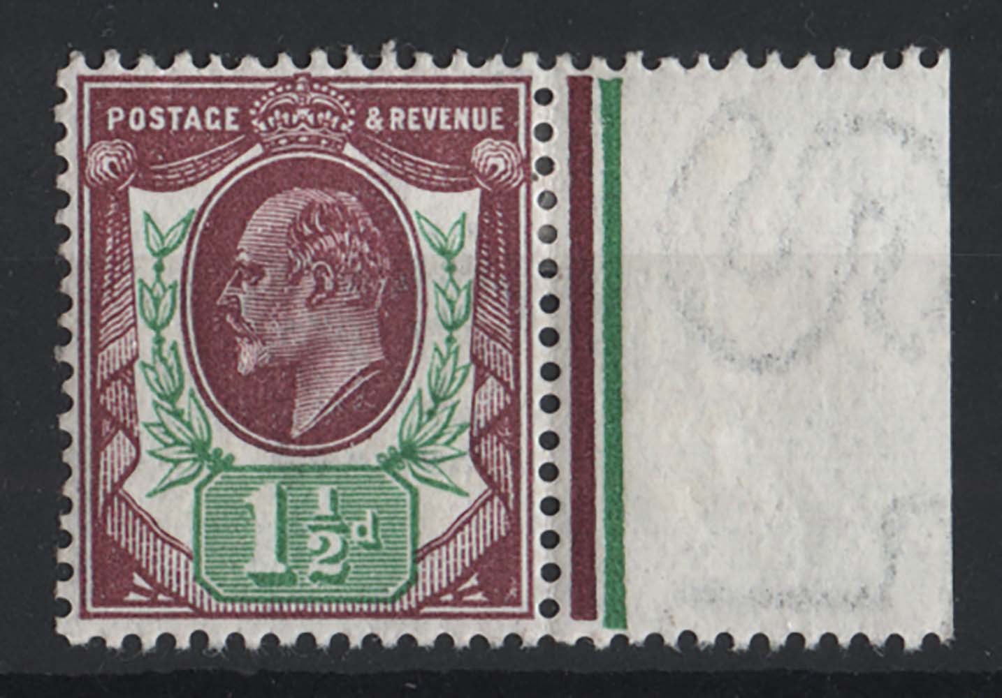 GB 1911 1½d reddish-purple & bright green sg287 vf mint, clear ‘S’ of Postage wmk in margin [ref 290-498/sa/ag0466]