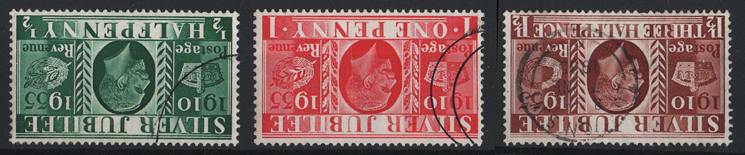 Silver Jubilee wmk inverted set of 3 fu sg453wi-455wi