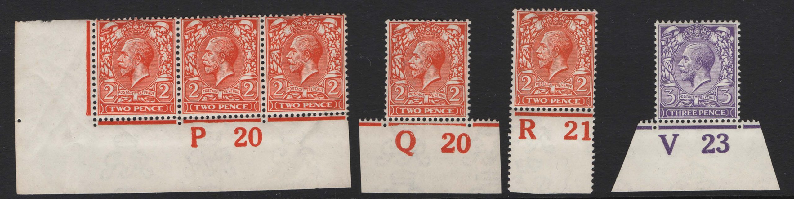 GB 1912 2d P20 corner strip of 3 unmounted mint, also Q20 and R21(P) singles fine mint sg368, also 3d V23 unmounted mint [ref 291-516/s/ai0028]