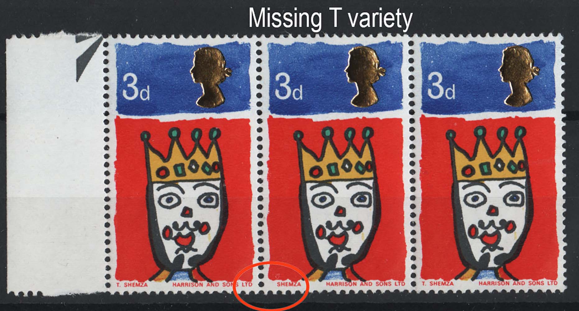 GB 1966 Christmas 3d unmounted mint strip of 3 with the missing T variety sg713c cat £25 [ref: 294/517 sa/am0456]