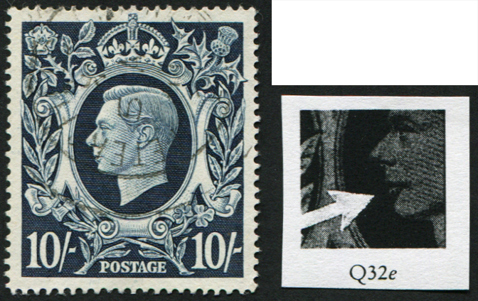 10s Dark Blue sg478 VARIETY, RETOUCH TO LOWER LIP vfu, steel cds clear of variety. Scarce to get fine used Spec Q32e