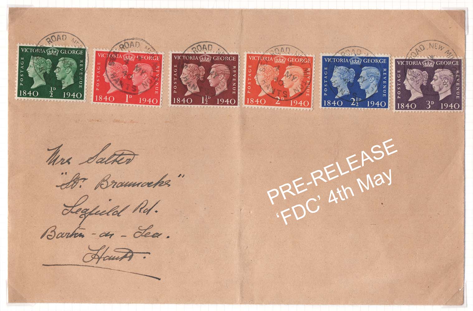 #523 GB 1940 Centenary set PRE-RELEASE ‘FDC’ New Milton 4th May cds