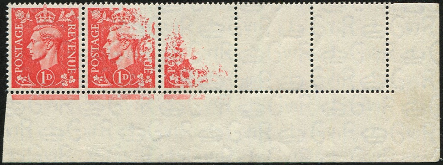 1d sg486 Spectacular PROGRESSIVE DRY PRINT variety on bottom row of five um, 2 stamps totally blank. Amazing