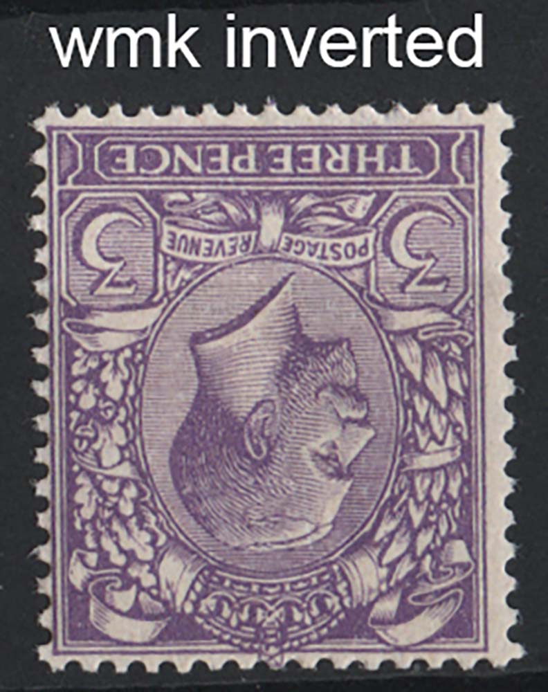 GB 1912 3d violet watermark inverted unmounted mint sg375wi cat £160 [ref 291-536/sa/ai0296]