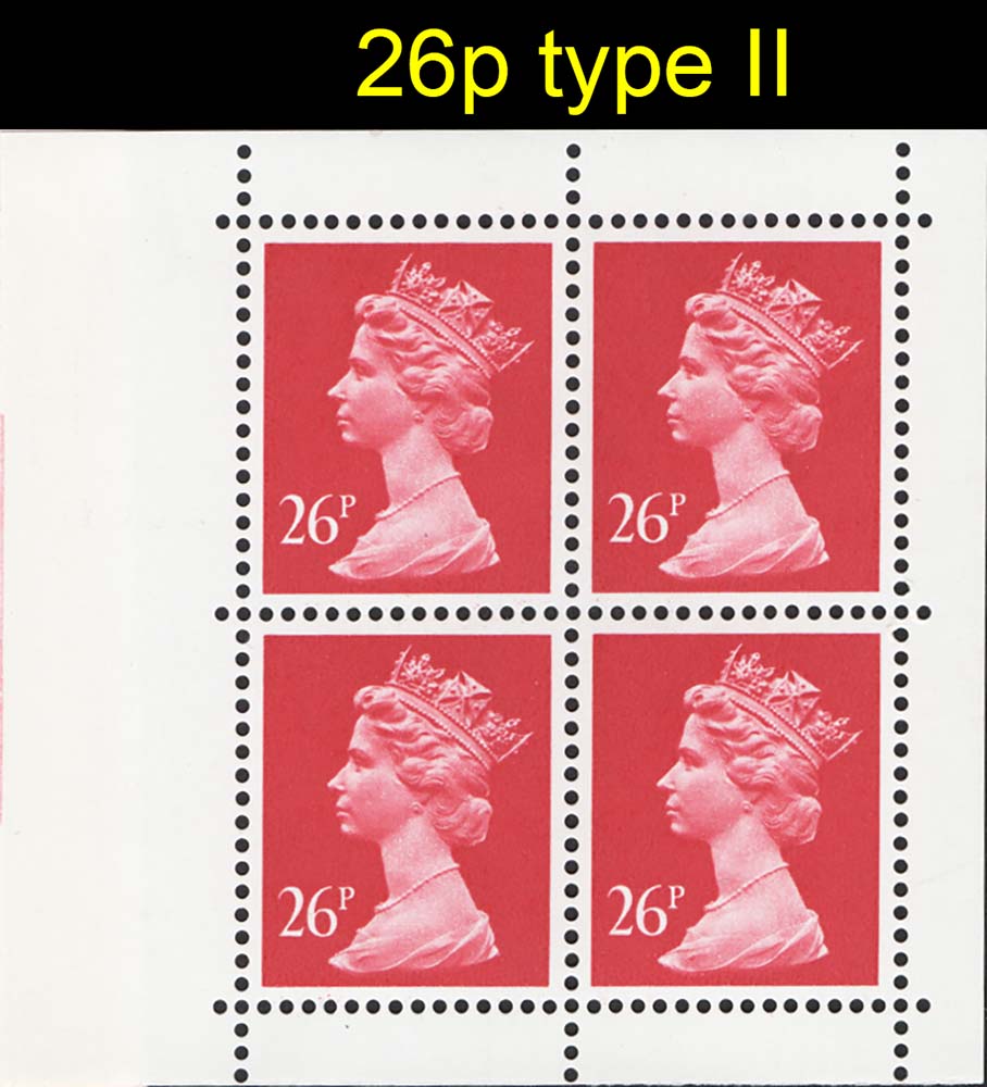 Those difficult Machins um: 26p rosine Type II sgX971b in complete booklet pane c£22