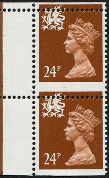 GB 1991 Wales 24p sgW59 DRAMATIC misperfed VERTICAL PAIR unmounted mint marginal. [ref: 294/541 sb/an129]