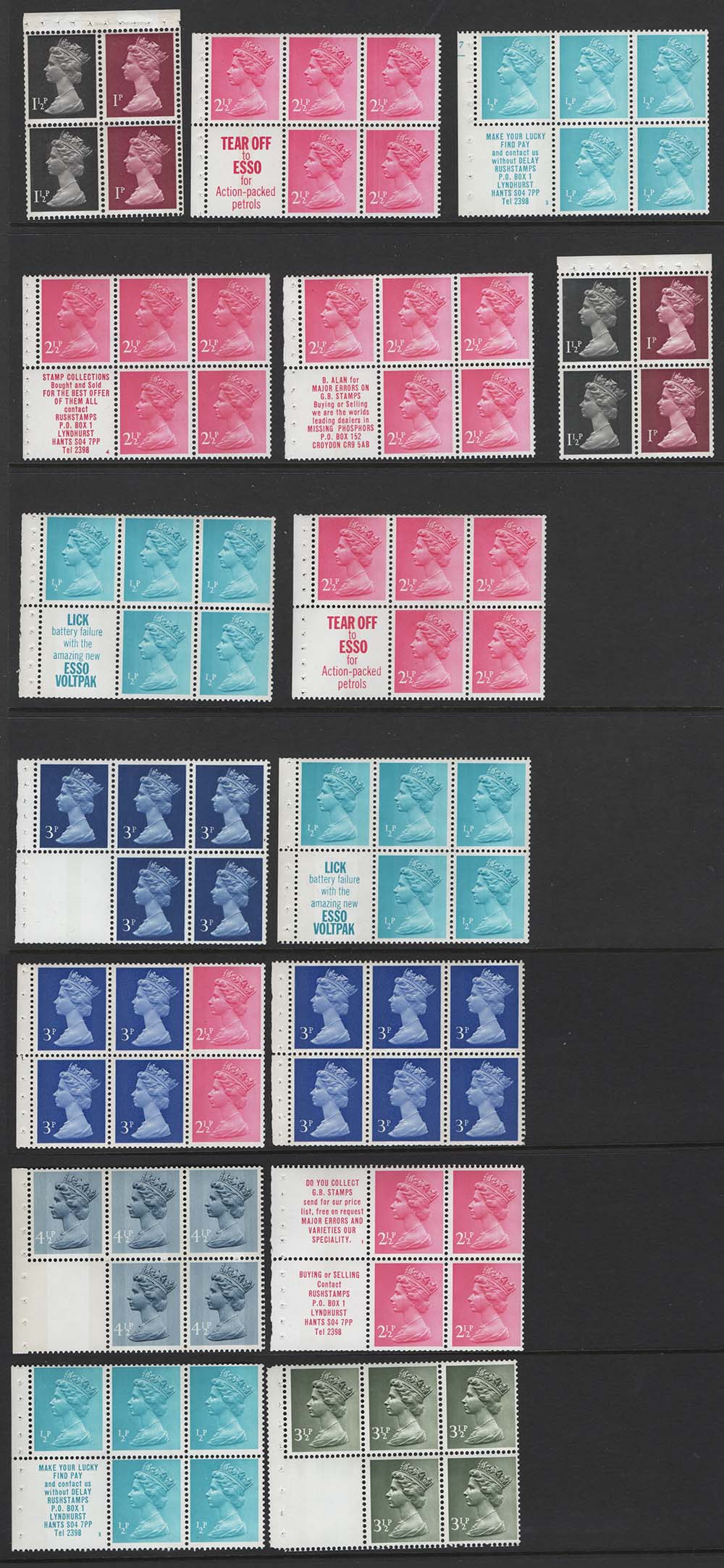 GB 1971 Machin group of 16 stitched booklet panes, various perf types um, mostly good perfs incl ½p cyl pane ae0676 l 289/ #547