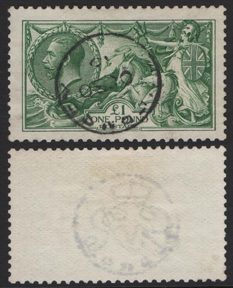 £1 green seahorse fu 1915 Guernsey cds, as scan sg403