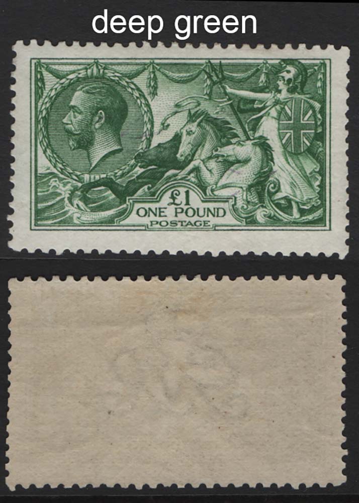 GB 1913 £1 deep green seahorse fine mint sg403var Spec N72(2) lovely rich colour cat £4500 [ref 291-551/sa/ai0323]