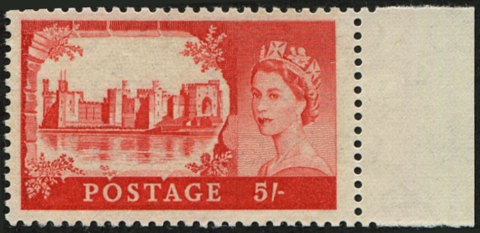 GB 1963 Bradbury 5s sg596ab VARIETY, PRINTED ON THE GUMMED SIDE unmounted mint both sides, side marginal [ref 293-559/sb/al139]