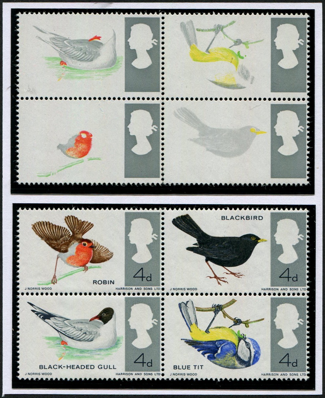 Birds 4d sg696ab ERROR, FOUR COLOURS OMITTED, BLACK VALUE ETC, BLUE, BISTRE & REDDISH-BROWN um, probably the most striking of all early classic QEII errors, Brandon Cert