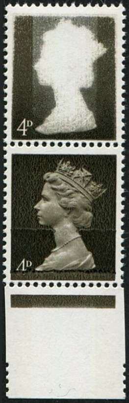 GB 1967 Machin 4d 2B PVA sg731 Spectacular DRY PRINT of Queen’s HEAD in VERTICAL PAIR unmounted mint [ref 293-565/sb/al143]
