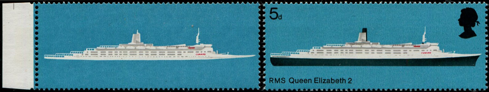 #570 GB 1969 Ships 5d sg778a VARIETY, BLACK OMITTED Queen’s HEAD, VALUE, HULL