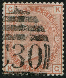 GB Used Abroad 1873 1s BROWN sg151 (watermark spray) C30 VALPARISO fine upright strike, well centred & fresh (cat £550 as GB) [ref: 294/574 sb/an039]