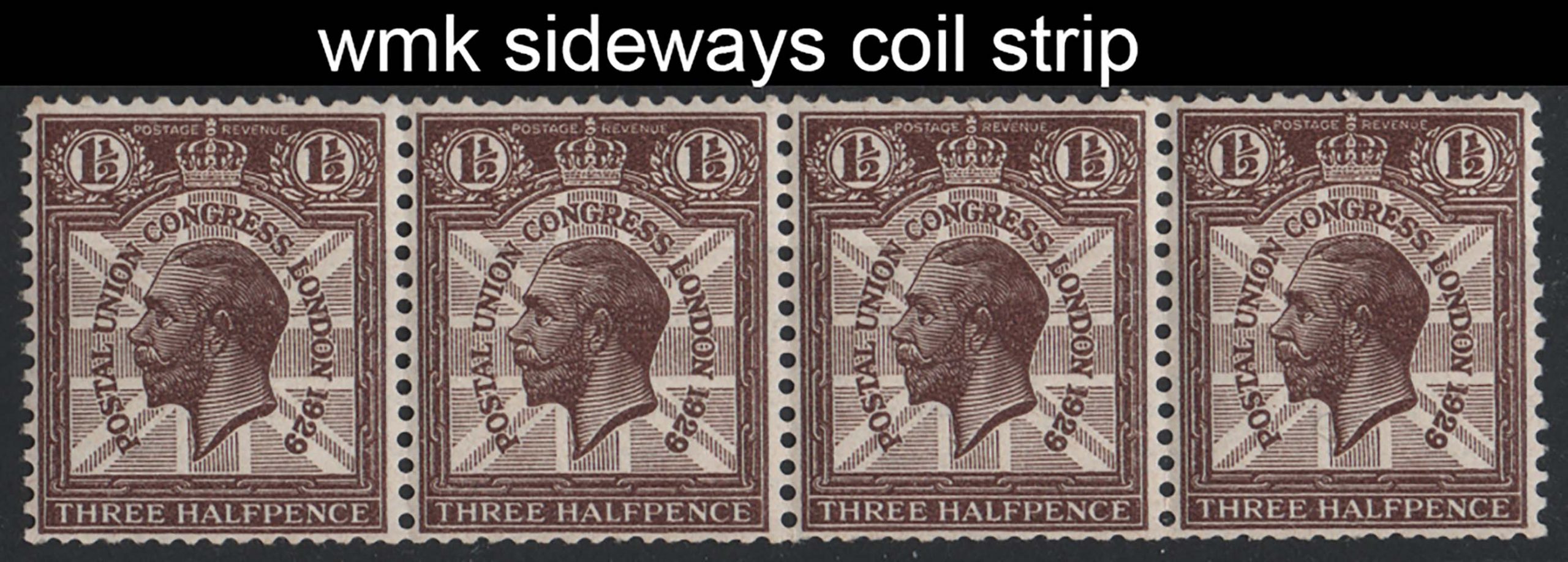 GB 1929 PUC 1½d watermark sideways unmounted mint coil strip of 4, perfs as image – sg436a cat £360 as singles [ref 291-576/sa/ai0292]