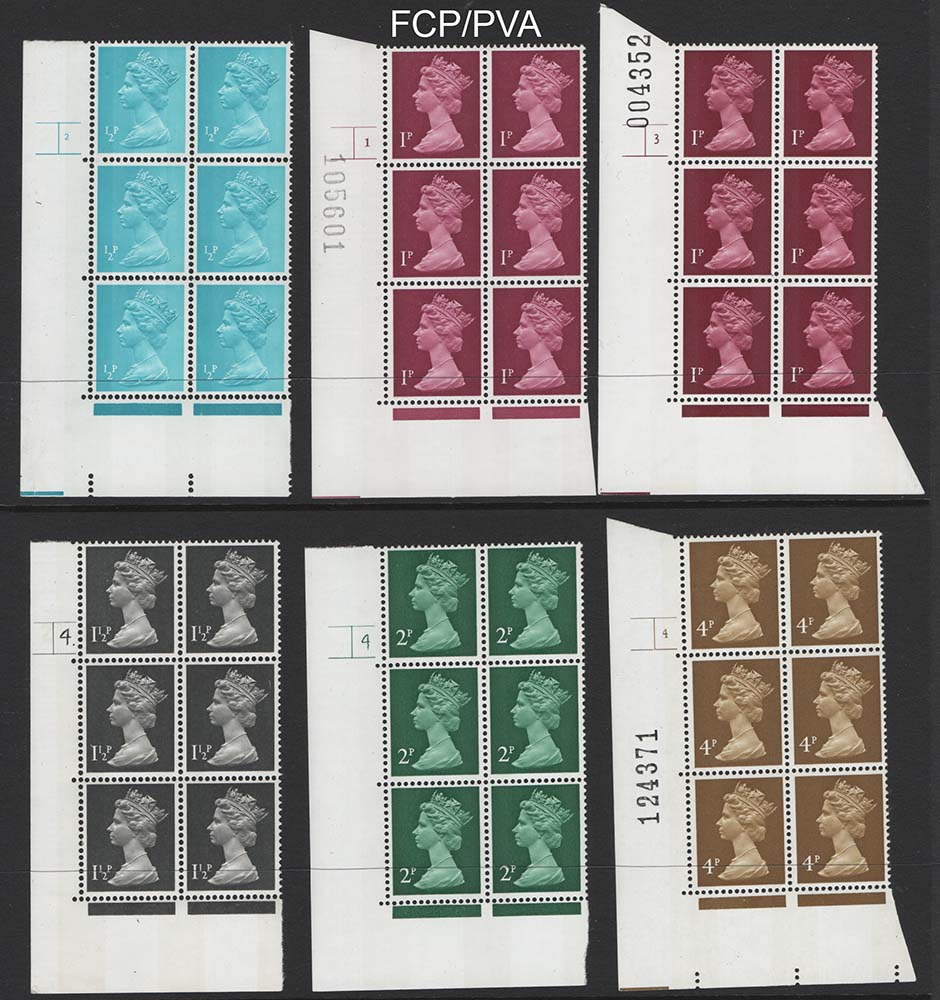 Machin um FCP/PVA cyl blks: ½p cyl 2 p7, 1p 1 p2, 3 p7, 1½p 4 dot p2, 2p 4 p7, 4p 4 p- all no dot ex 1½p MCC £65+