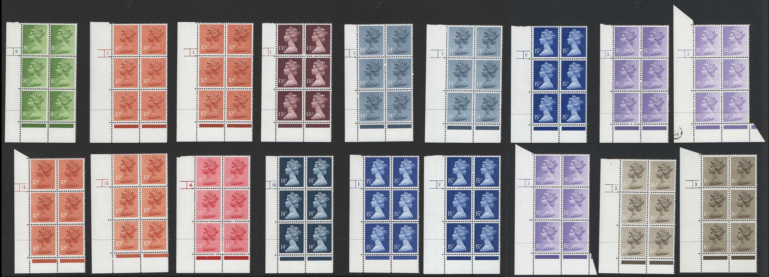 GB 1971 Machin unmounted mint PCP/ACP cyl blocks range: 8½p-16p [18 cyl blocks] under face value [ref 293-591/b92/ak0123]