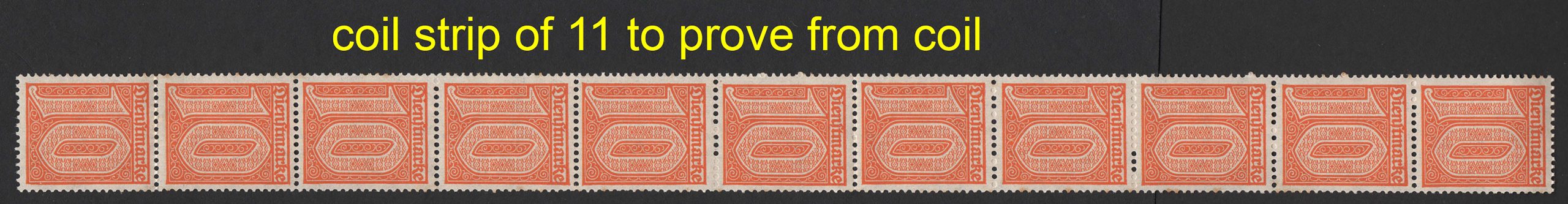 Official 10pf orange sgO126, in strip of 11, proving from rolls, Mi65R, c160€, um, tone spot on 1 perf