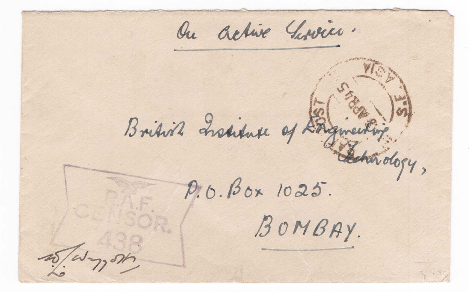 WW2 OAS cover from RAF SE Asia to Bombay, RAF censor #438