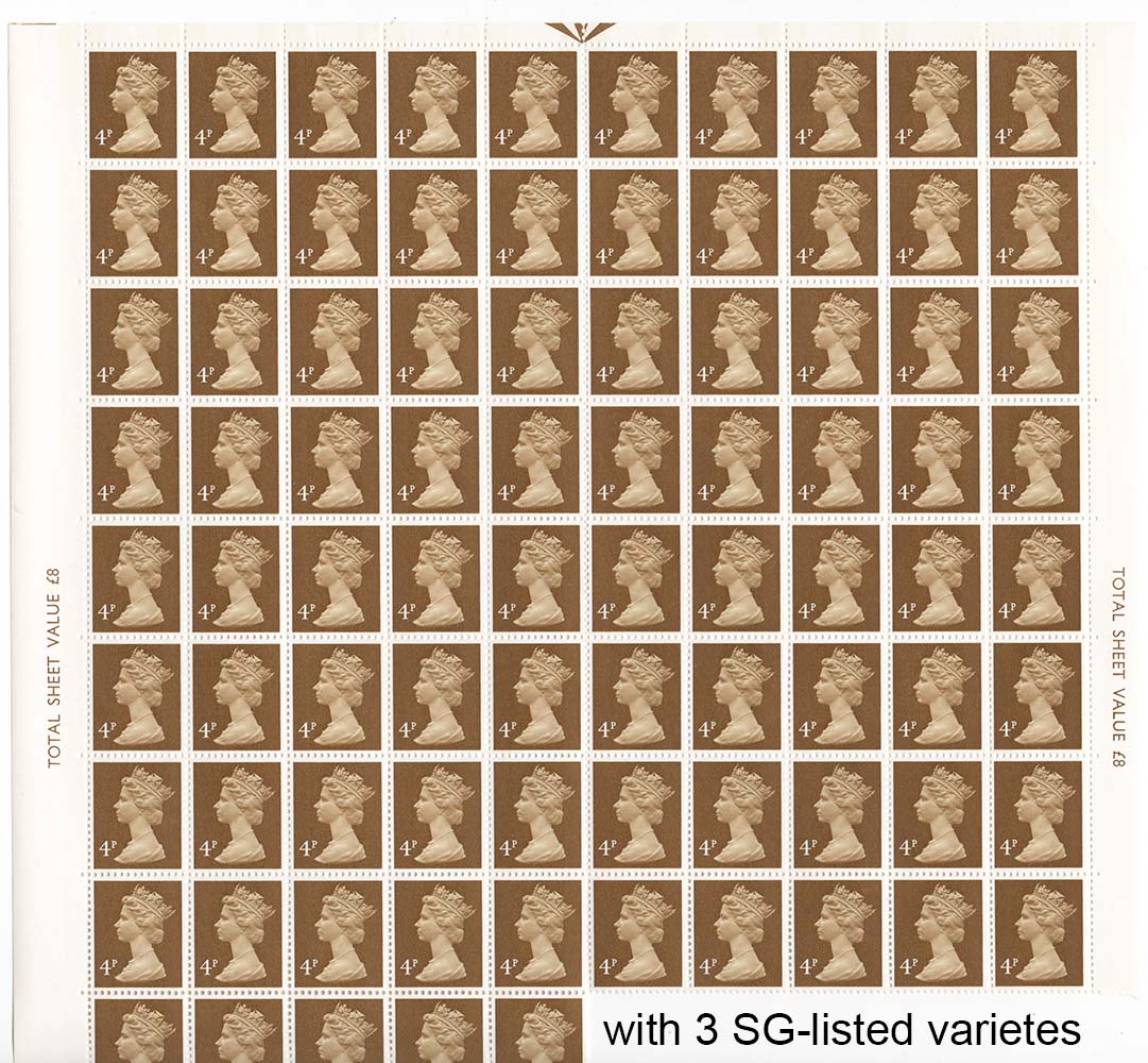Machin 4p OCP/PVA sgX861 um blk of 90 from cyl 5 no dot incl SG-listed varieties on r1/4, 10/1, 8/7