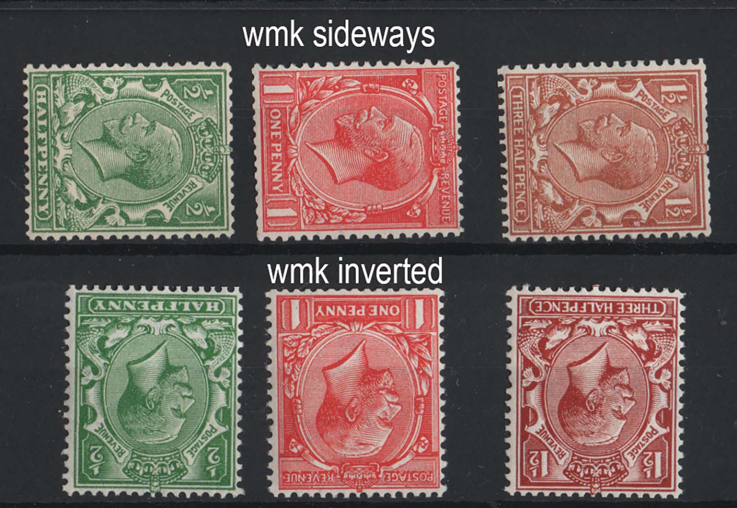 GB 1924 ½d – 1½d Block Cypher wmk sideways, ditto wmk inverted um sg418a-420a [ref 290-624/sa/ag0728]