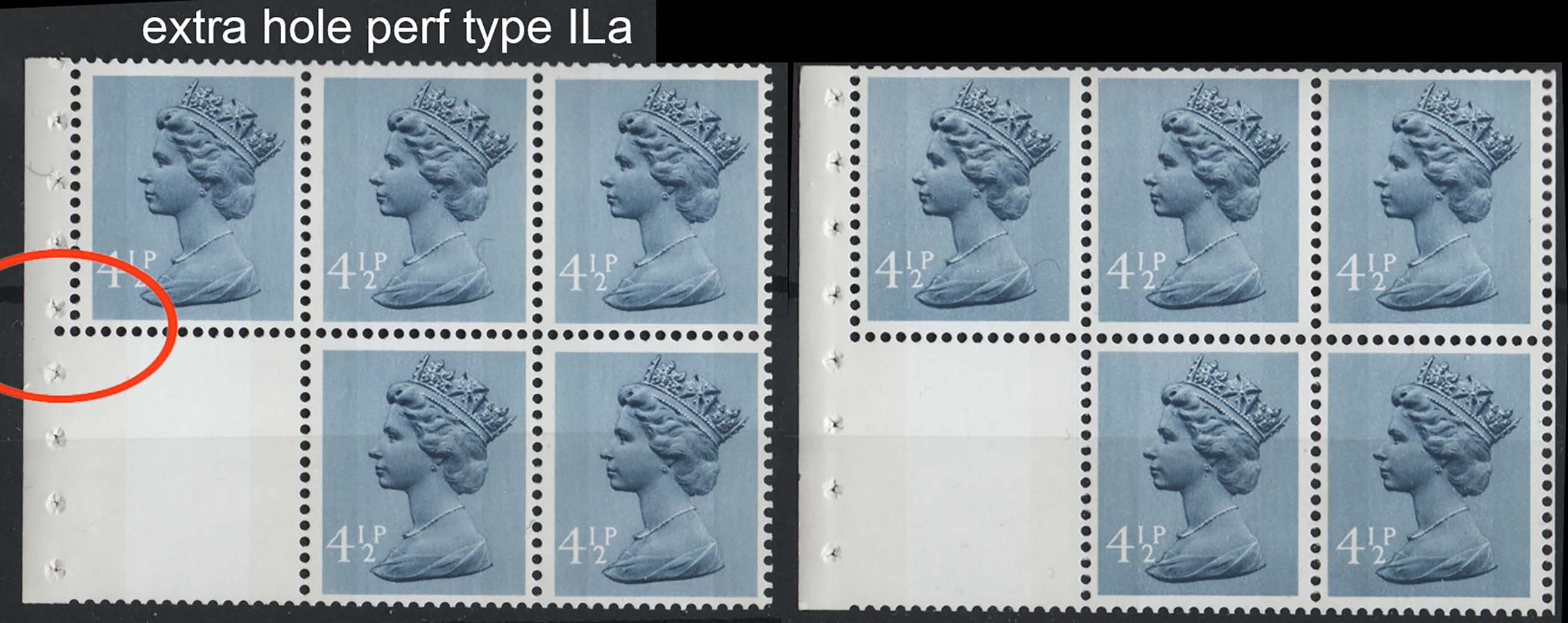 Machin 4½p pane Perf type ILa um, good perfs as scan, perf IL pane for comparison c£39 sgX865var