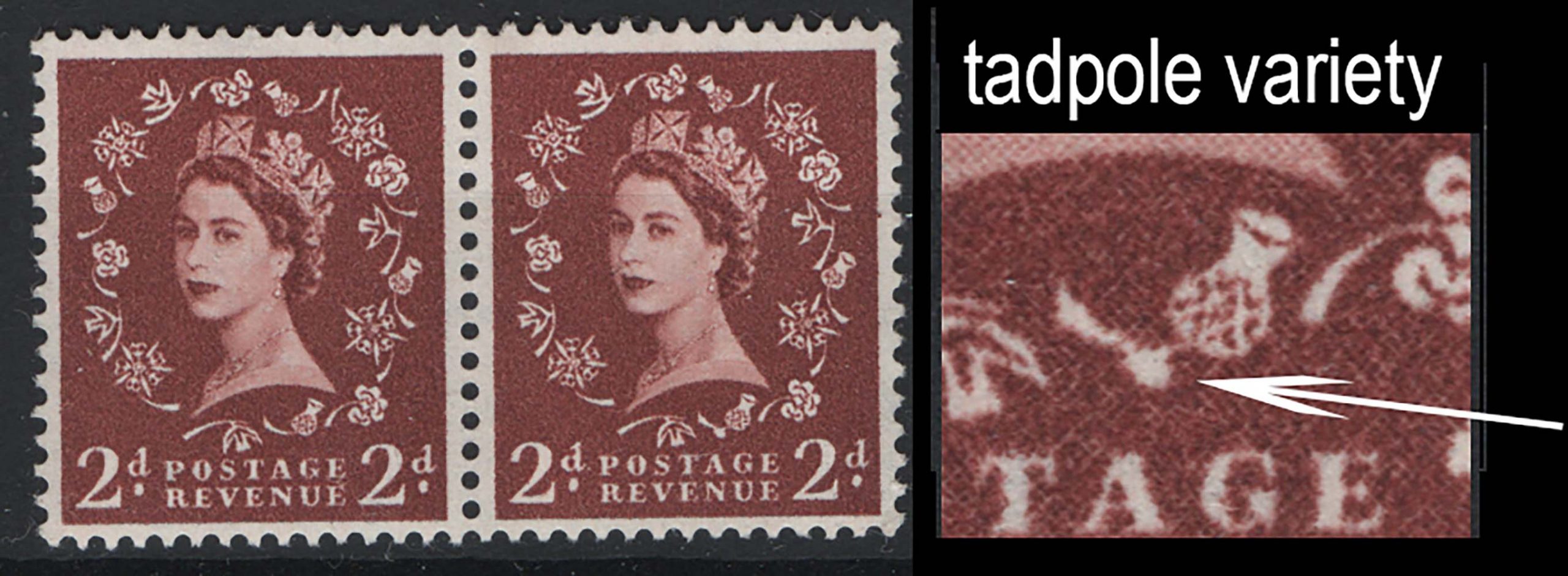 2d light red-brown the Tadpole variety in pair with normal um sg543b Spec S38f c£35