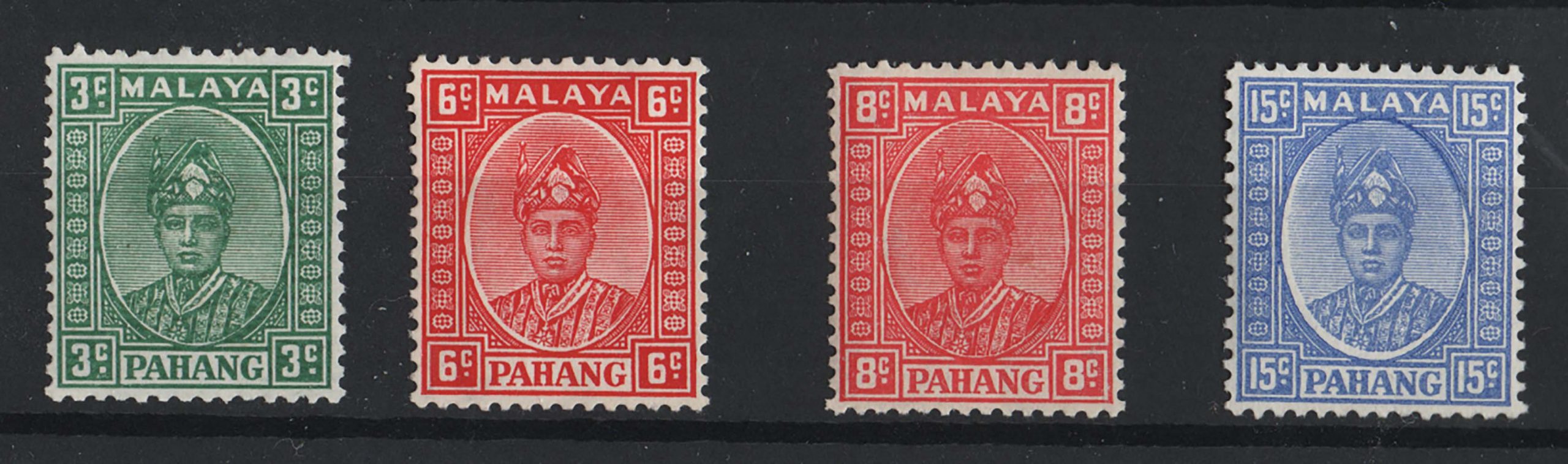 Malaya – Pahang 1935 The KGVI period values from the 1935 set, sg31, 34, 36, 39 cat £160+ [ref: 294/629 sa/am0242]