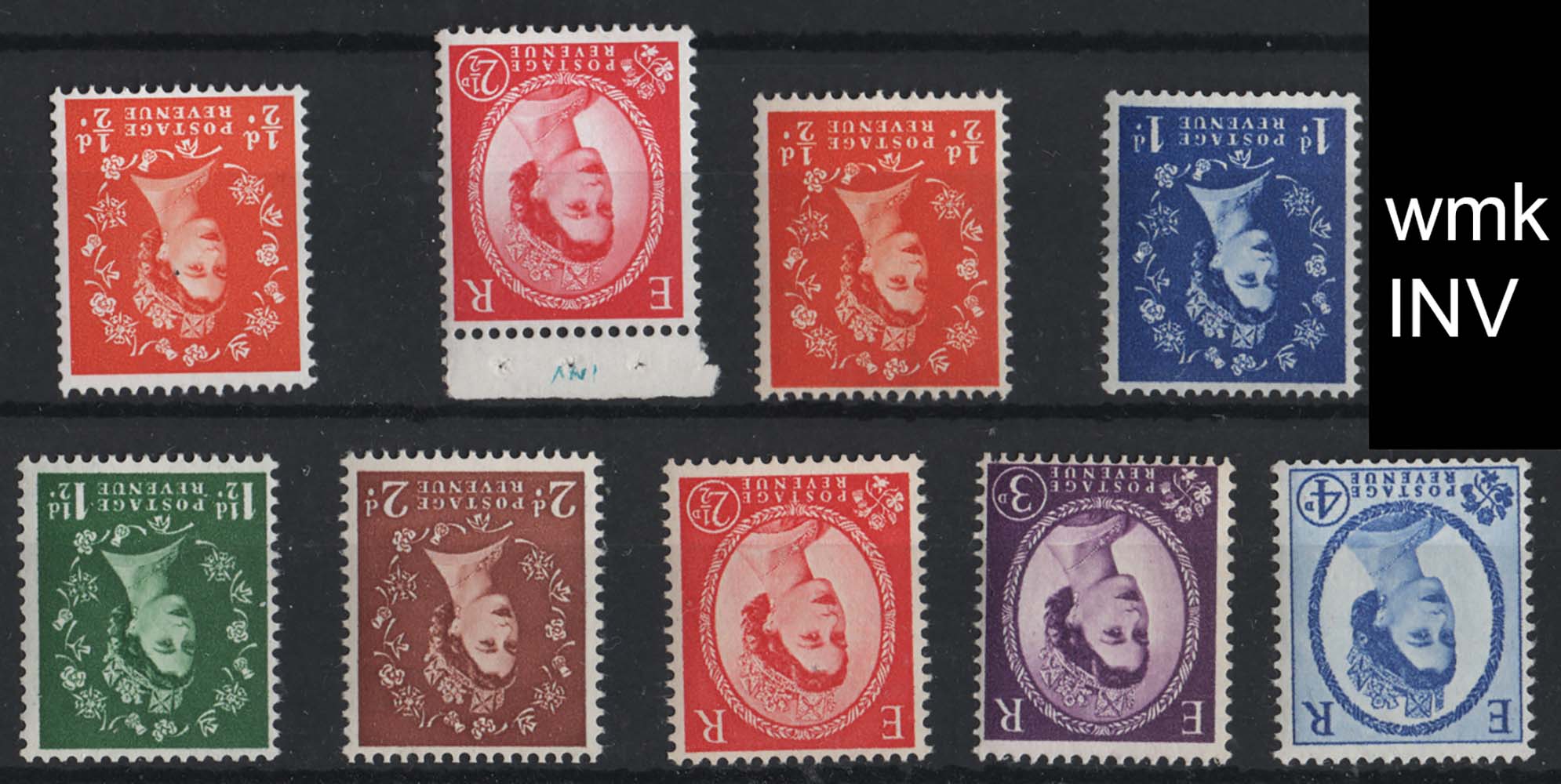 GB 1958 Crown watermark inverted set of 9 incl chalky papers unmounted mint good perfs incl scarce 2d sg571wi-576awi [ref 291-631/sa/ai0309]