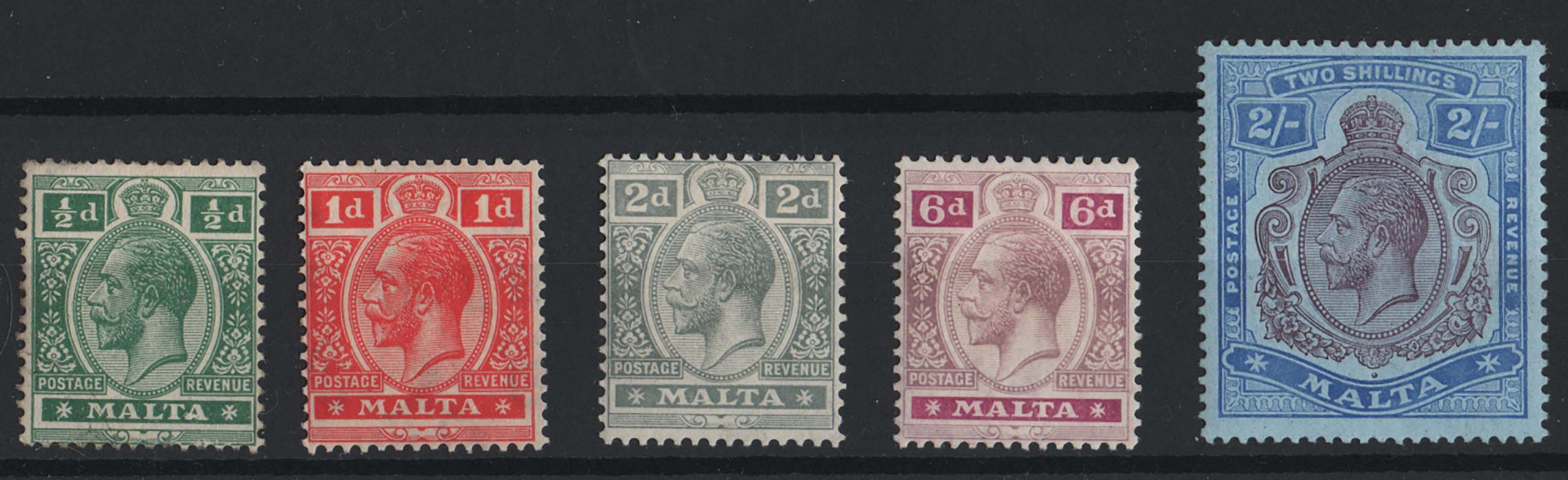 Malta 1914 MCA 2s very fine mint sg86, also ½d, 1d, 2d grey, 6d dull & bright purple sg71, etc cat £88+ [ref: 294/638 sa/ag0556]