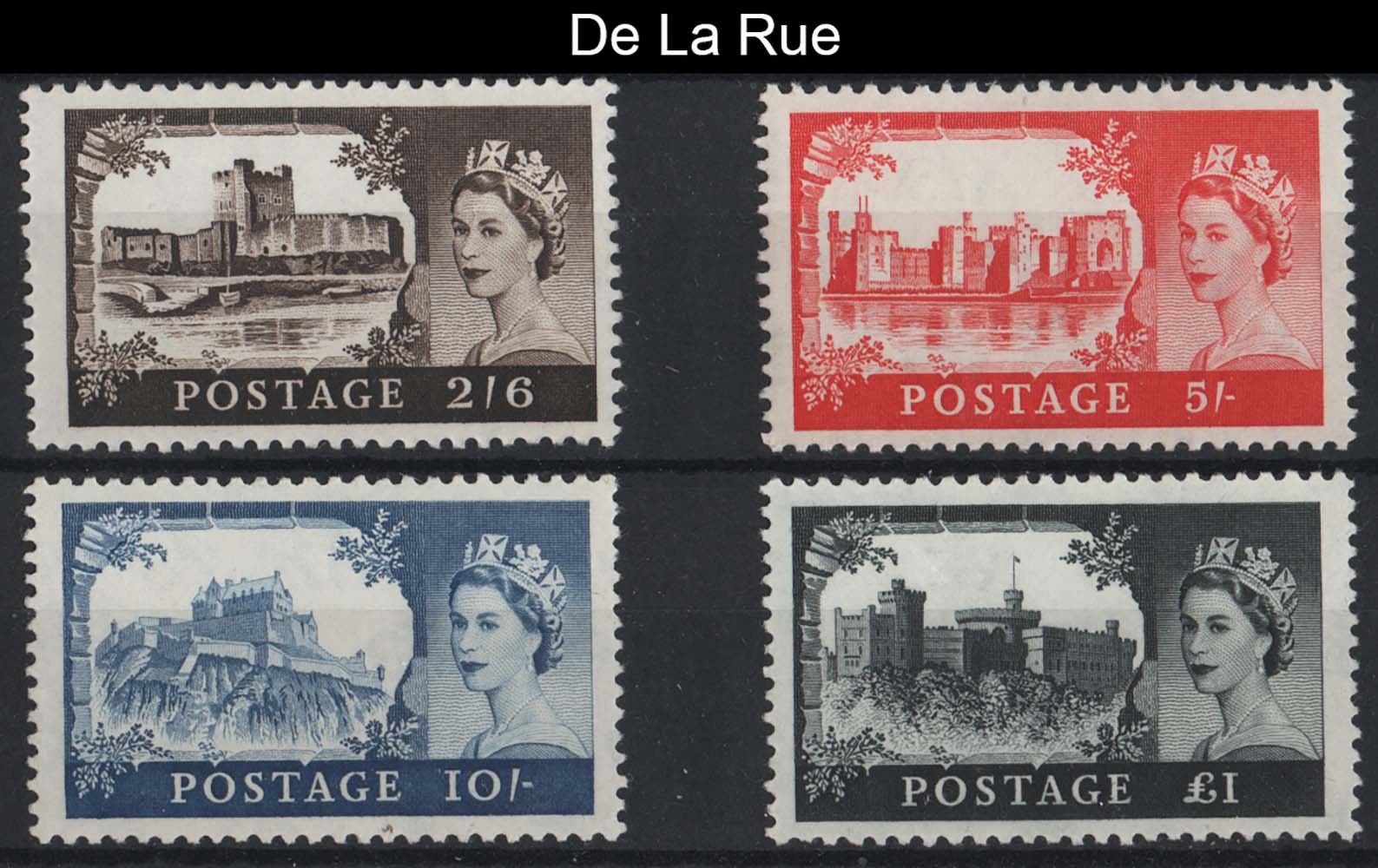 Castles, 2nd De La Rue set um, wmk crowns sg595-598