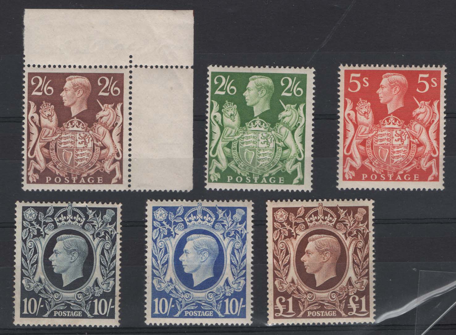 GB 1939 High Values set of 6, 2/6d – £1 fine um sg476-478c c£425 [ref 290-656/sa/ag0243]