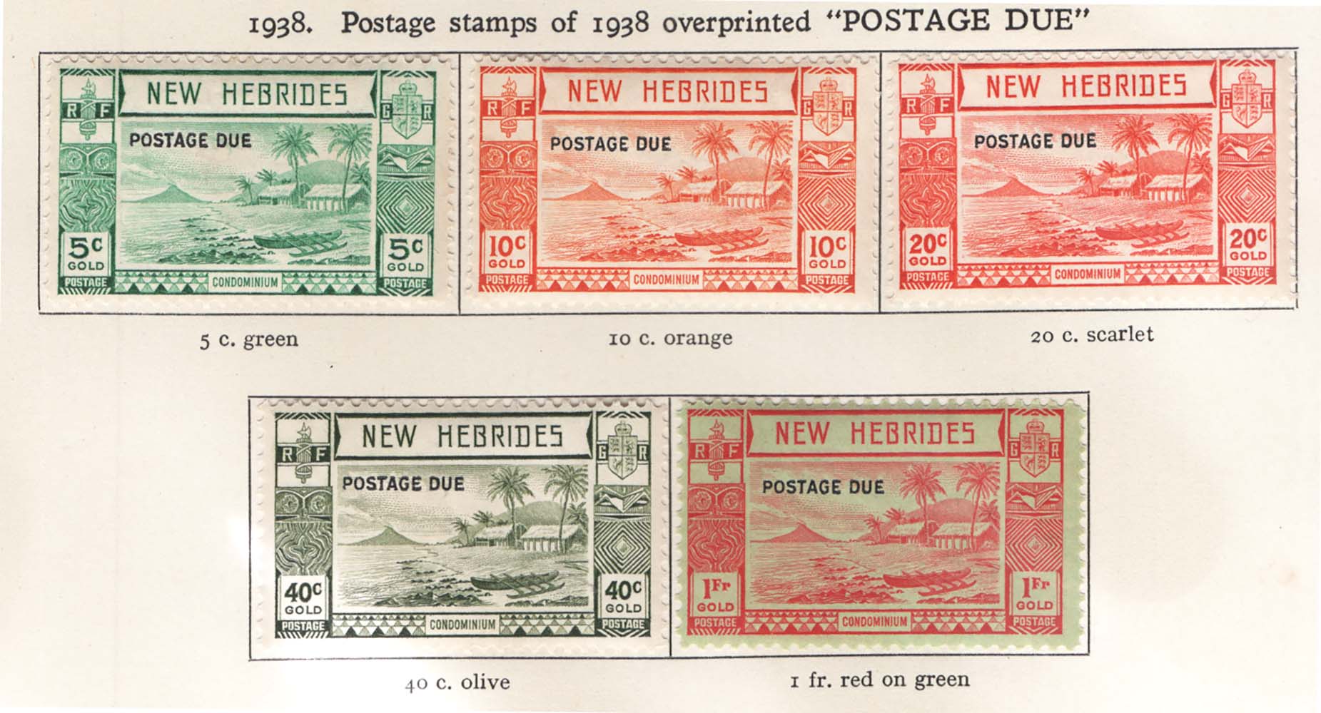 New Hebrides 1938 Postage Dues set of 5 very fine mint sgD6-D10 cat £190 [ref: 294/656 b08/am0215]