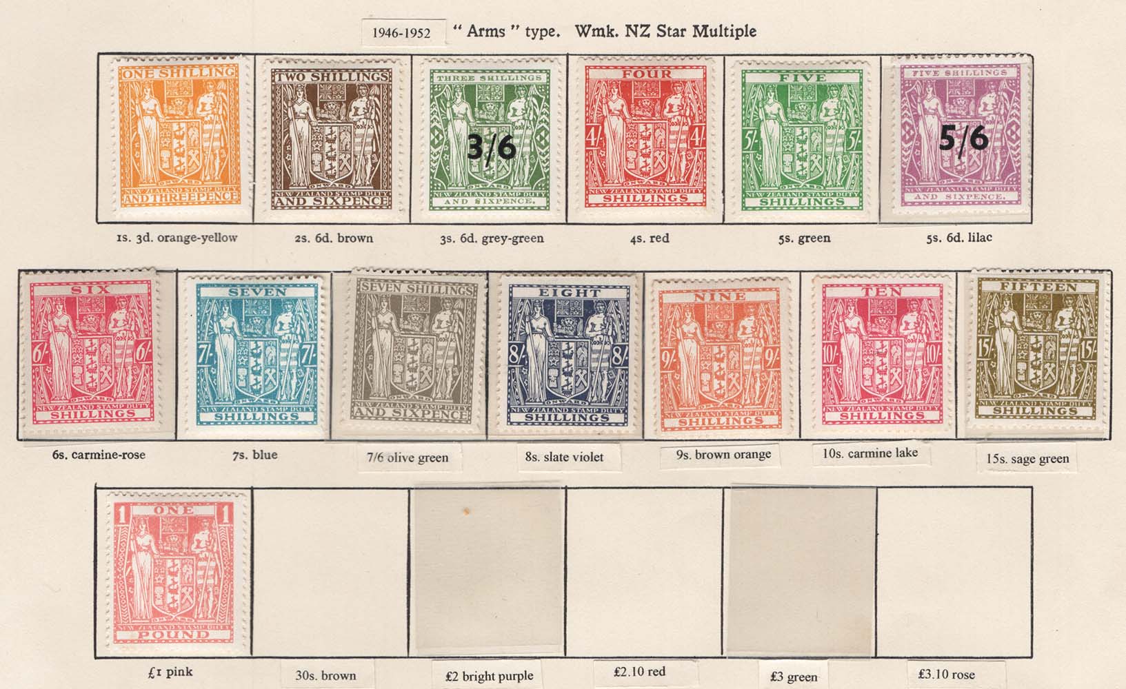 #665 New Zealand 1940 Arms postal fiscals multiple wmk inverted 1/3d – £1 vf mint, sgF191, etc c£1044