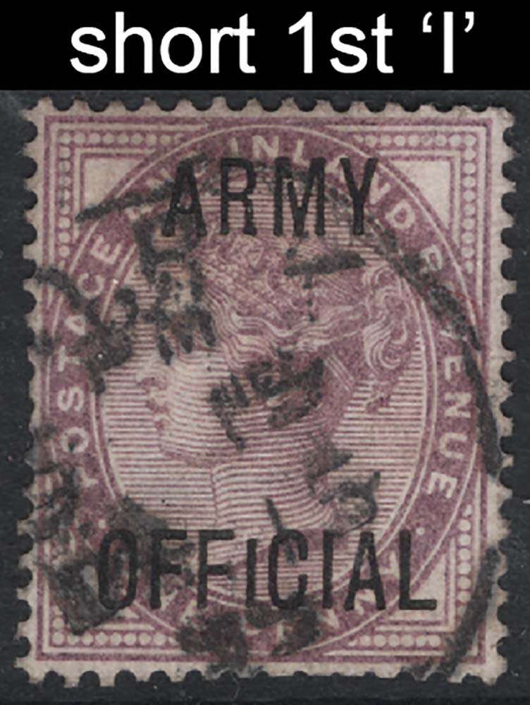 GB Officials 1882 1d lilac Army Official sgO43 very good used cds variety short first I in Official Spec L38k [ref 293-668/l/ai0116]