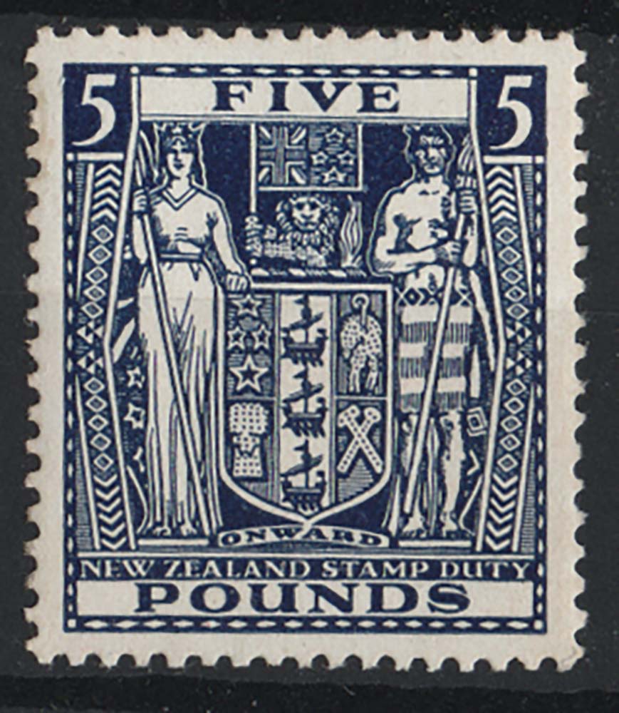 New Zealand 1940 Arms postal fiscals multiple watermark inverted £5 very fine mint, sgF209w cat £425 [ref: 294/668 sa/am0225]