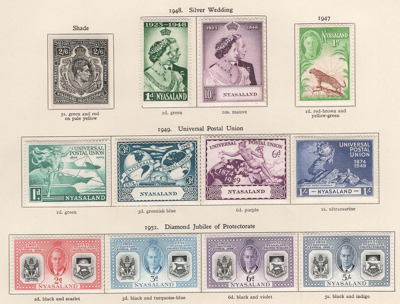 Nyasaland 1948 Silver Wedding set very fine mint sg161-162, then UPU and Diamond Jubilee sets [ref: 294/689 b08/am0240]