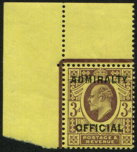GB Officials 1904 ADMIRALTY 3d sgO112 unmounted mint, CORNER MARGINAL brilliant fresh, fab colour & gum of this scarce stamp, Wenvoe Cert [ref 293-691/sb/al108]