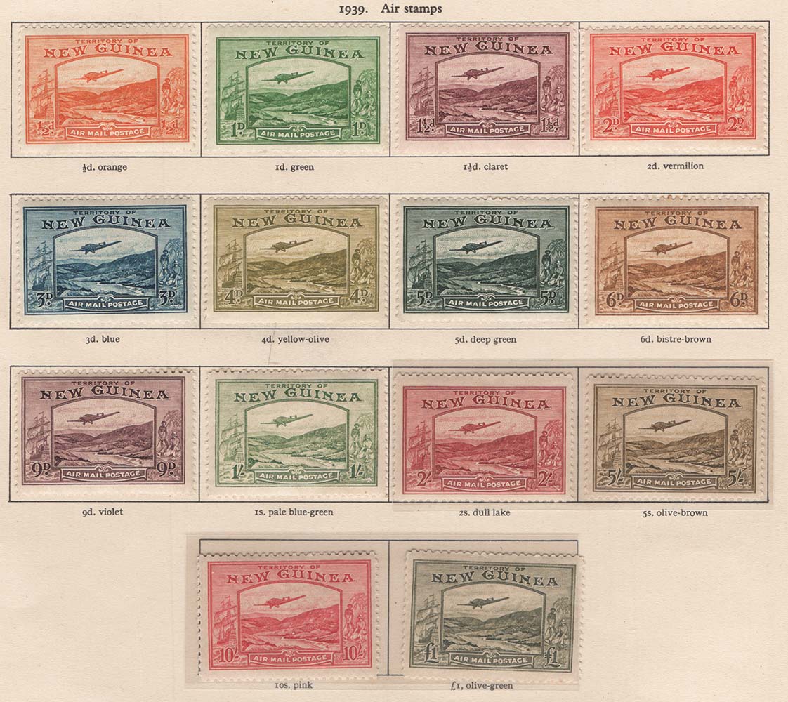 Papua New Guinea 1939 New Guinea Airs set of 14 very fine mint sg212-225 cat £1100 [ref: 294/699 b08/am0213]