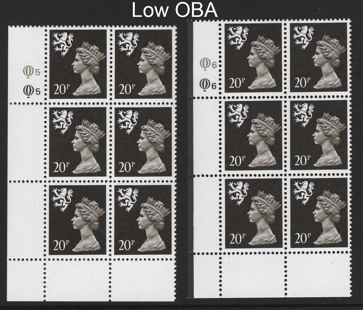 Scotland 20p black, low OBA cyl Q5Q5 & Q6Q6