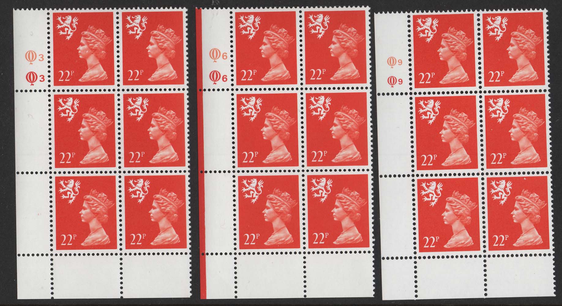Scotland 22p orange-red cyl Q3Q3, Q6Q6, Q9Q9 MCC£45