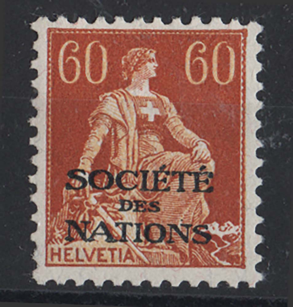 Switzerland 1922 League Of Nations 60c, ordinary paper, sgLN21, um [ref: 294/724 sa/ae1042]