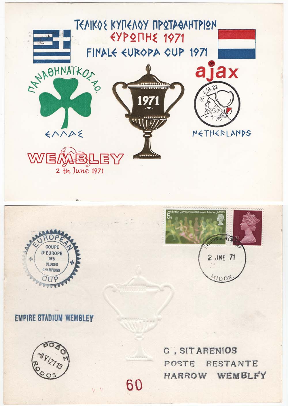GB 1971 Football European Cup Final cover Greece vs Netherlands at Wembley [ref 290-730/l/ag0421]