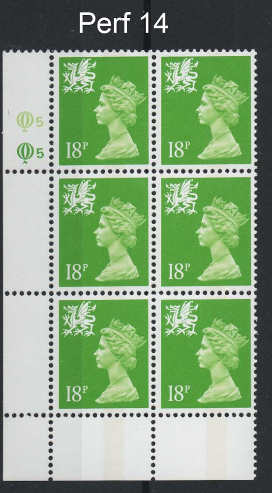 GB Machin Cyl blocks Wales 18p bright green CB perf 14 cyl Q5Q5 [ref 293-731/sa/ak0779]