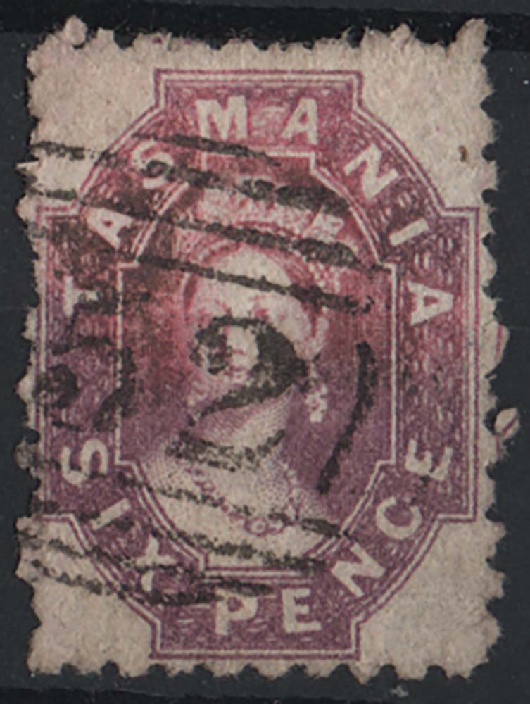 Tasmania 1863 6d reddish-mauve, perf 10, double line watermark sg67 fine used, perfs as scan cat £120 [ref: 294/731 sa/am0306]
